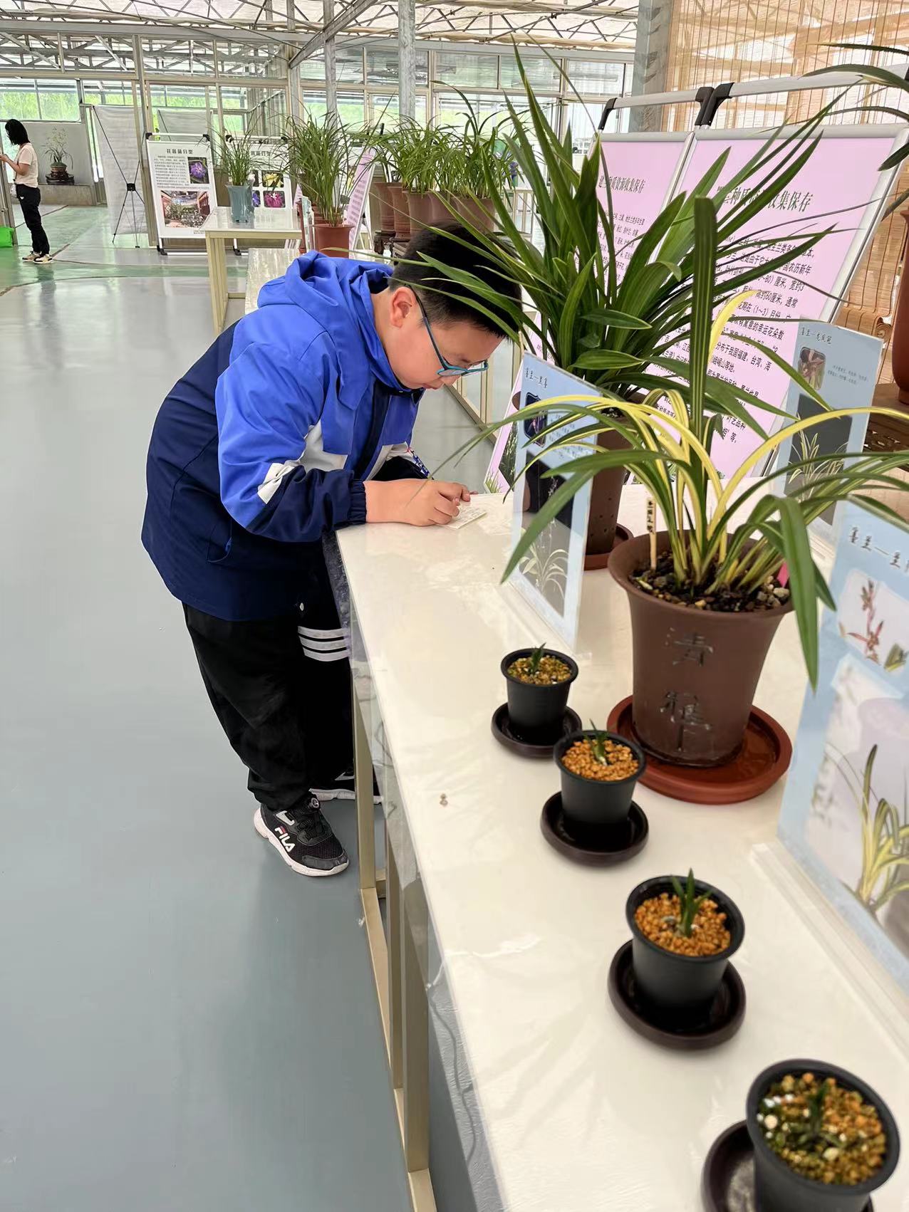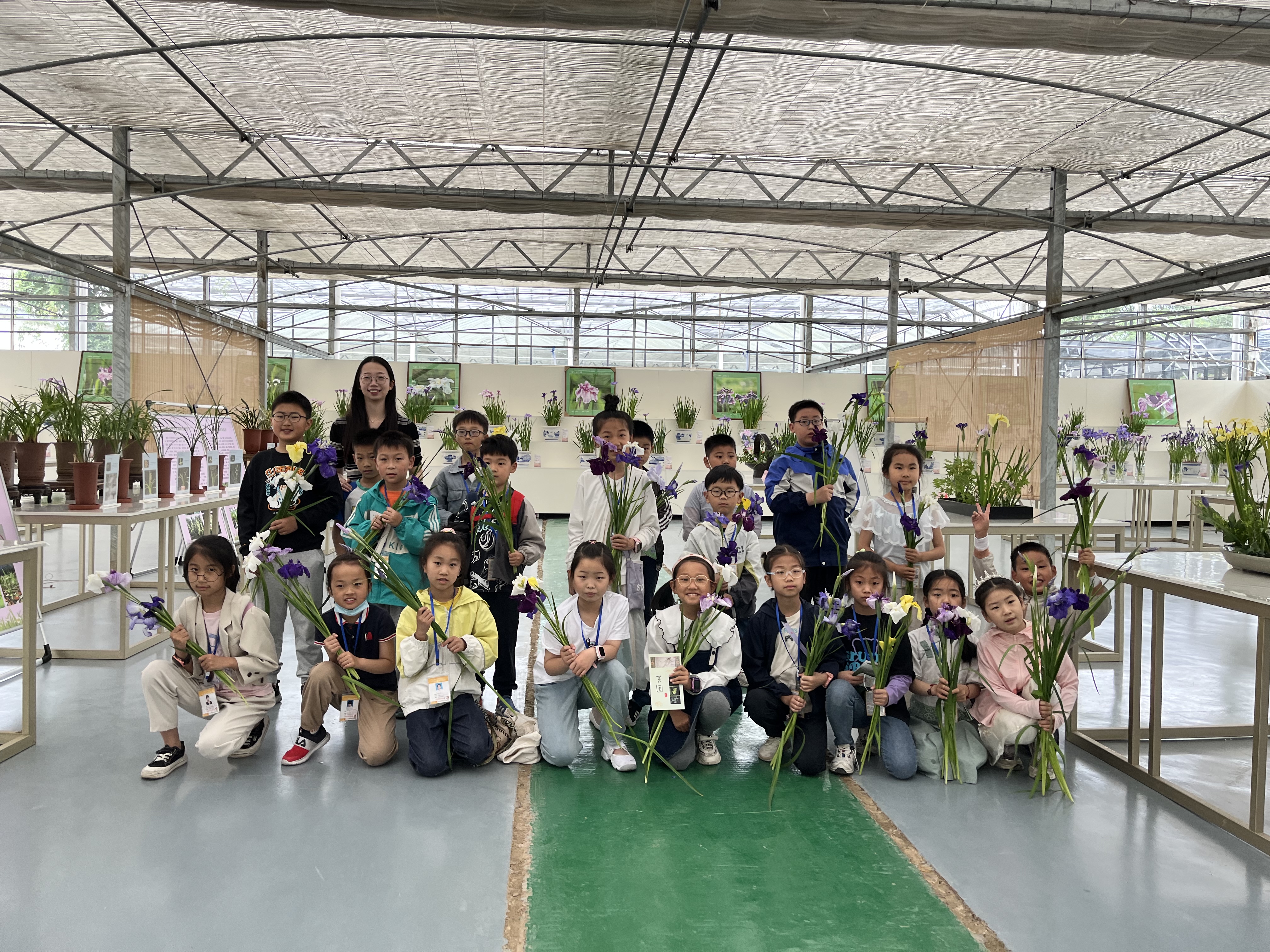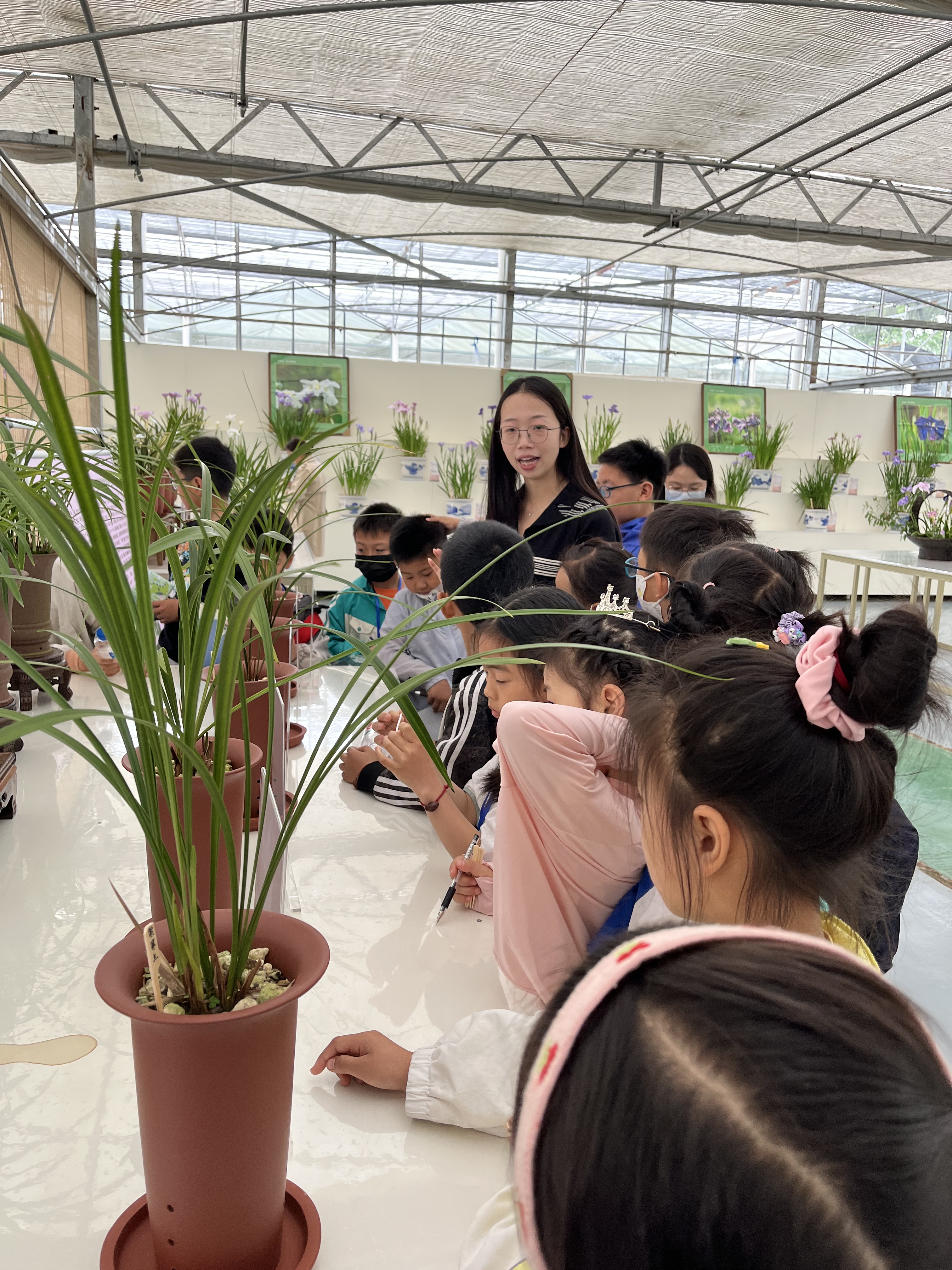 小记者们在花卉遗传育种科研人员魏晓羽的带领下,通过两段视频短片初步了解了我国菖蒲文化以及菖蒲的种类与功效。端午时节是菖蒲盛开的时候,整洁的展厅里一排排美丽的花昌蒲盆景吸引了众多目光,“仔细观察,用心思考,用脑记忆。待会儿我会提问噢!” 魏晓羽给小记者们布置了参观任务。“有任务?”小记者们立刻凝神屏息,小耳朵“竖”了起来。魏晓羽带领小记者们参观了兰花种质资源圃和花菖蒲品种栽培圃,自动喷、滴灌设施令小记者们惊奇的同时也使大家真正明白了科技研究对生活的重要意义。